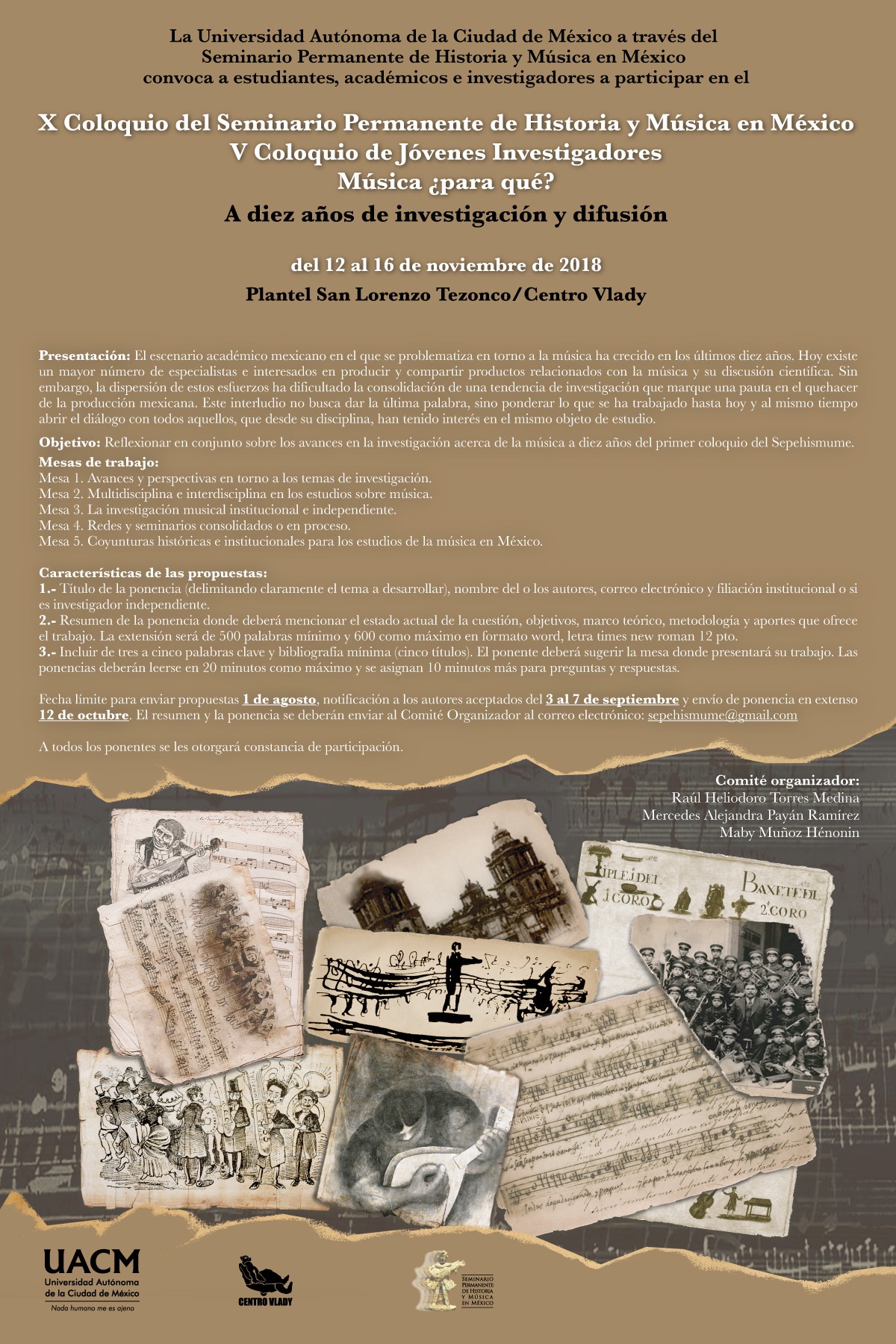 Escrito por imusmxabril 6, 2018septiembre 13, 2018 Convocatoria. X Coloquio del Seminario Permanente de Historia y Música en México de la UACM Comparte esto: Compartir en X (Se abre en una ventana nueva) X Comparte en Facebook (Se abre en una ventana nueva) Facebook Me gusta Cargando... Relacionado Deja un comentario Cancelar la respuesta Δ