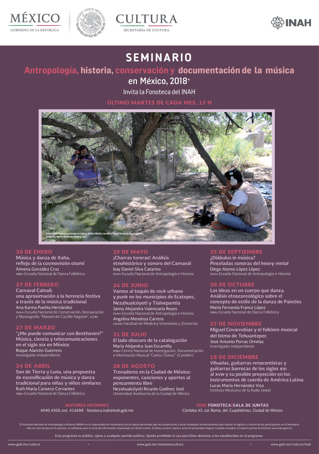 Compartimos la programación del Seminario de Antropología, historia, conservación y documentación de la música en México, 2018.