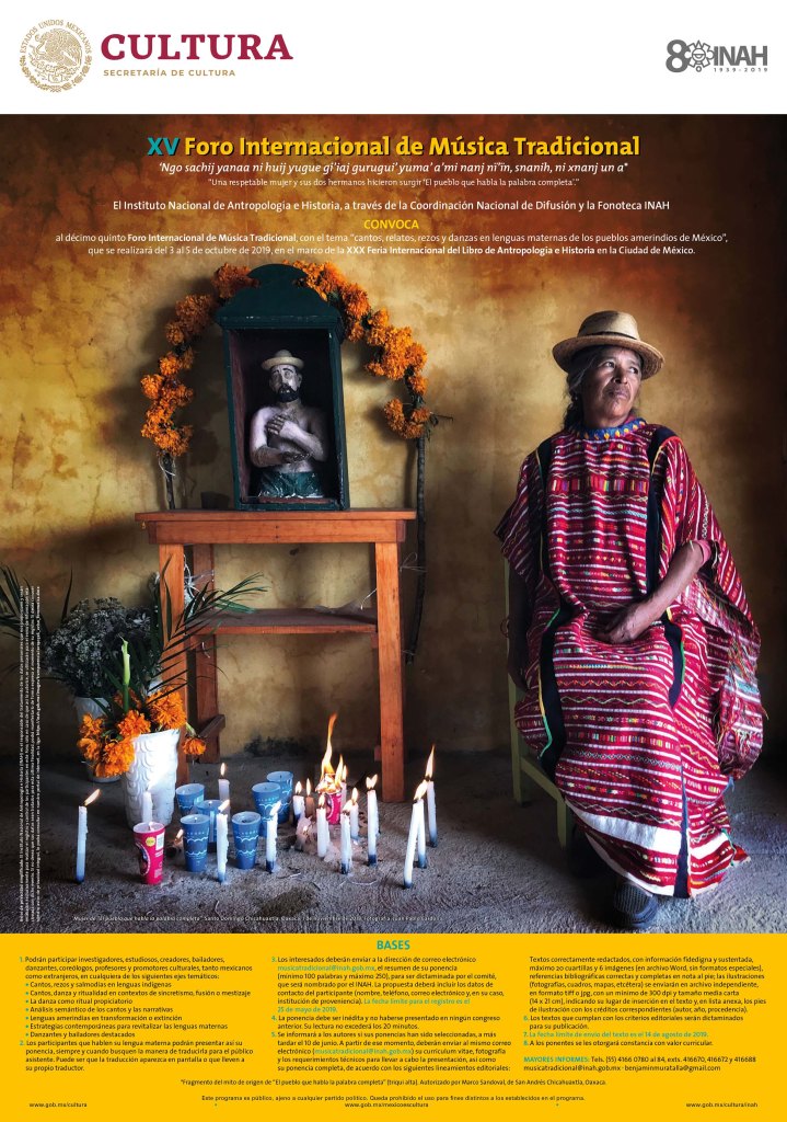 Nuestra colega Mónica Hernández Monroy nos envía la convocatoria del XV Foro Internacional de Música Tradicional que se llevará a cabo en el contexto de la Feria del Libro de Antropología e Historia en Octubre.